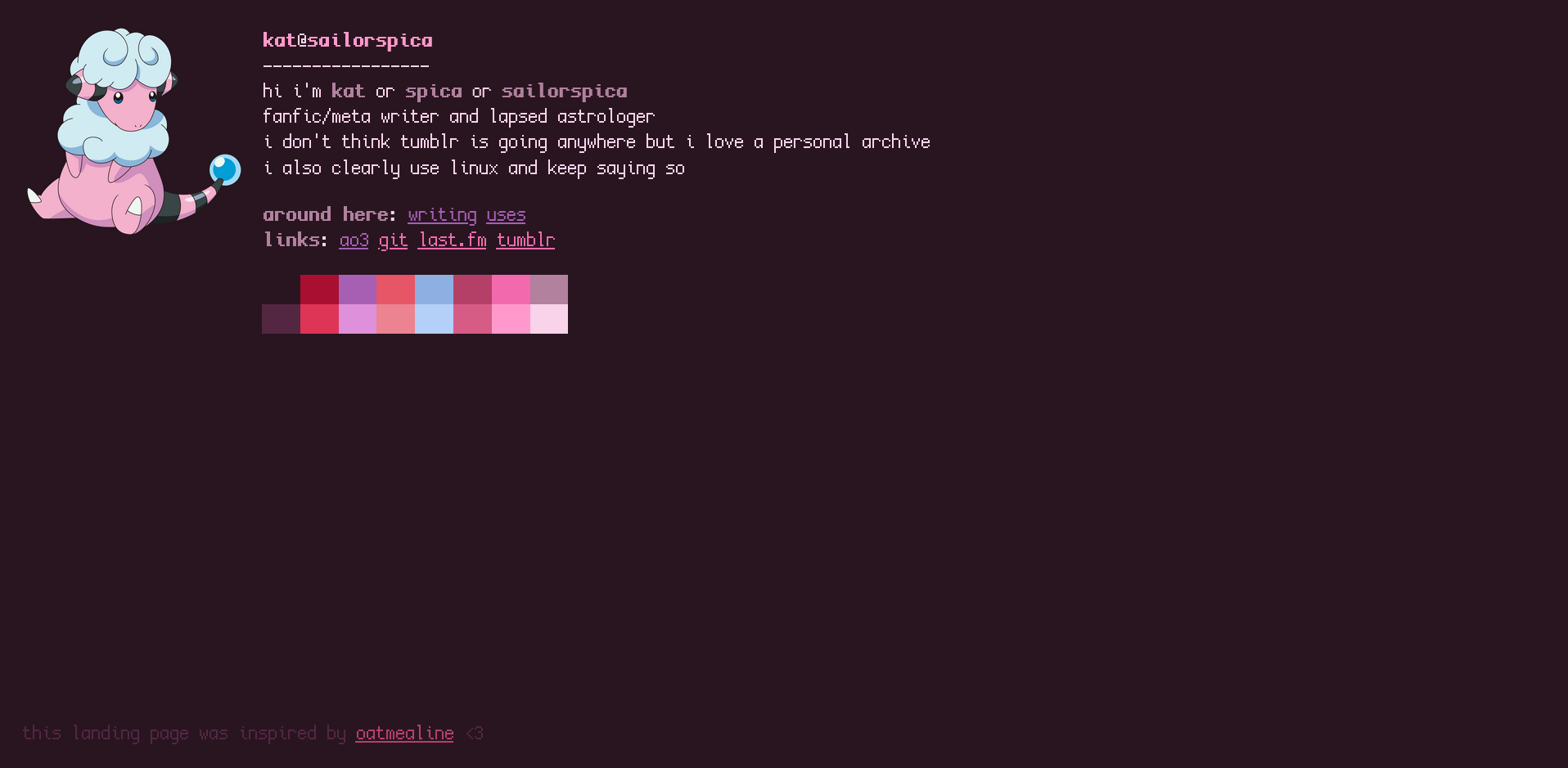 If my Git log is to be believed, this only lasted 10 days. It had a deceptive sysfetch-style landing page before a bright, serif website. These fonts are Cozette Vector (later IBM VGA 9x16) and Junicode.